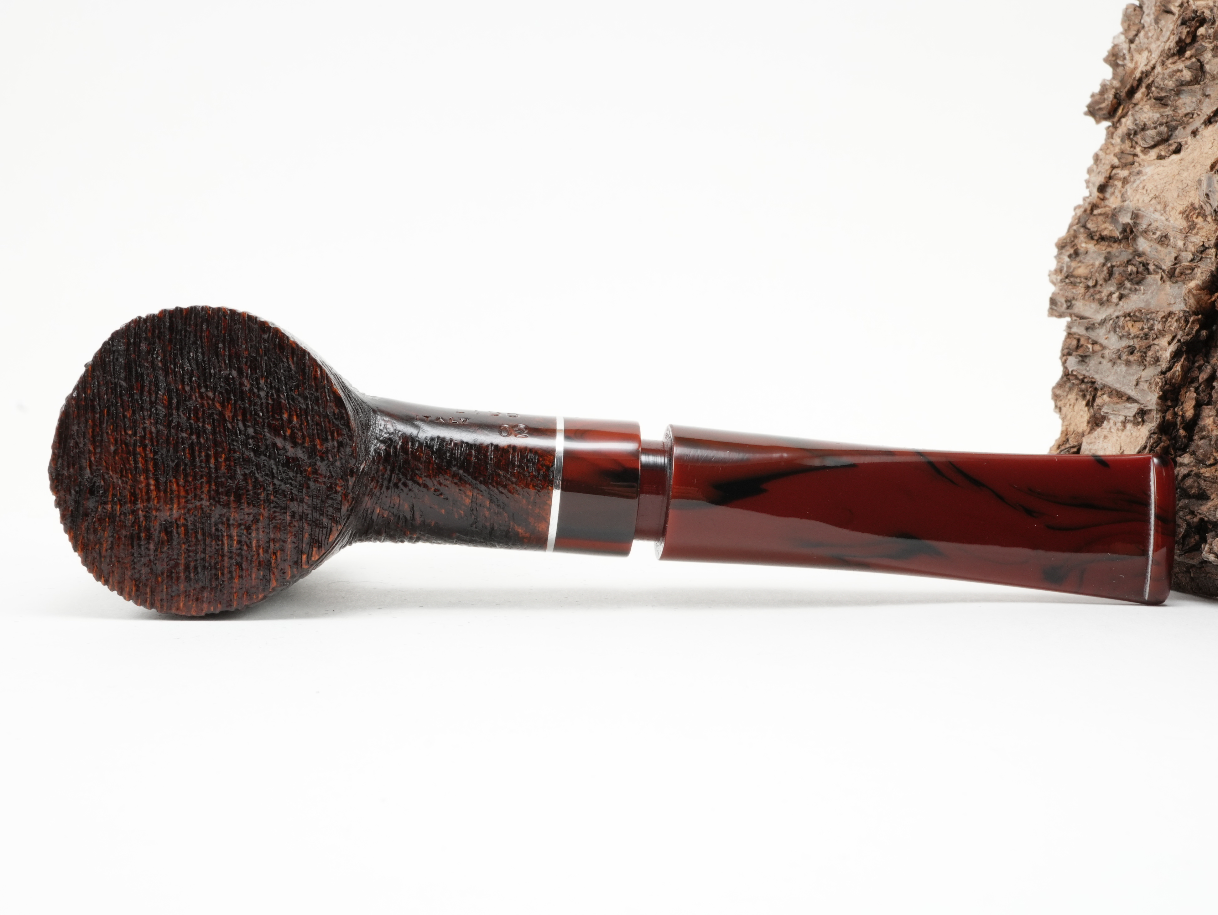 Die Lido 2 ist eine elegante Pfeife mit rustizierter Oberfläche und einem Mundstück in Cumberland-Optik.
