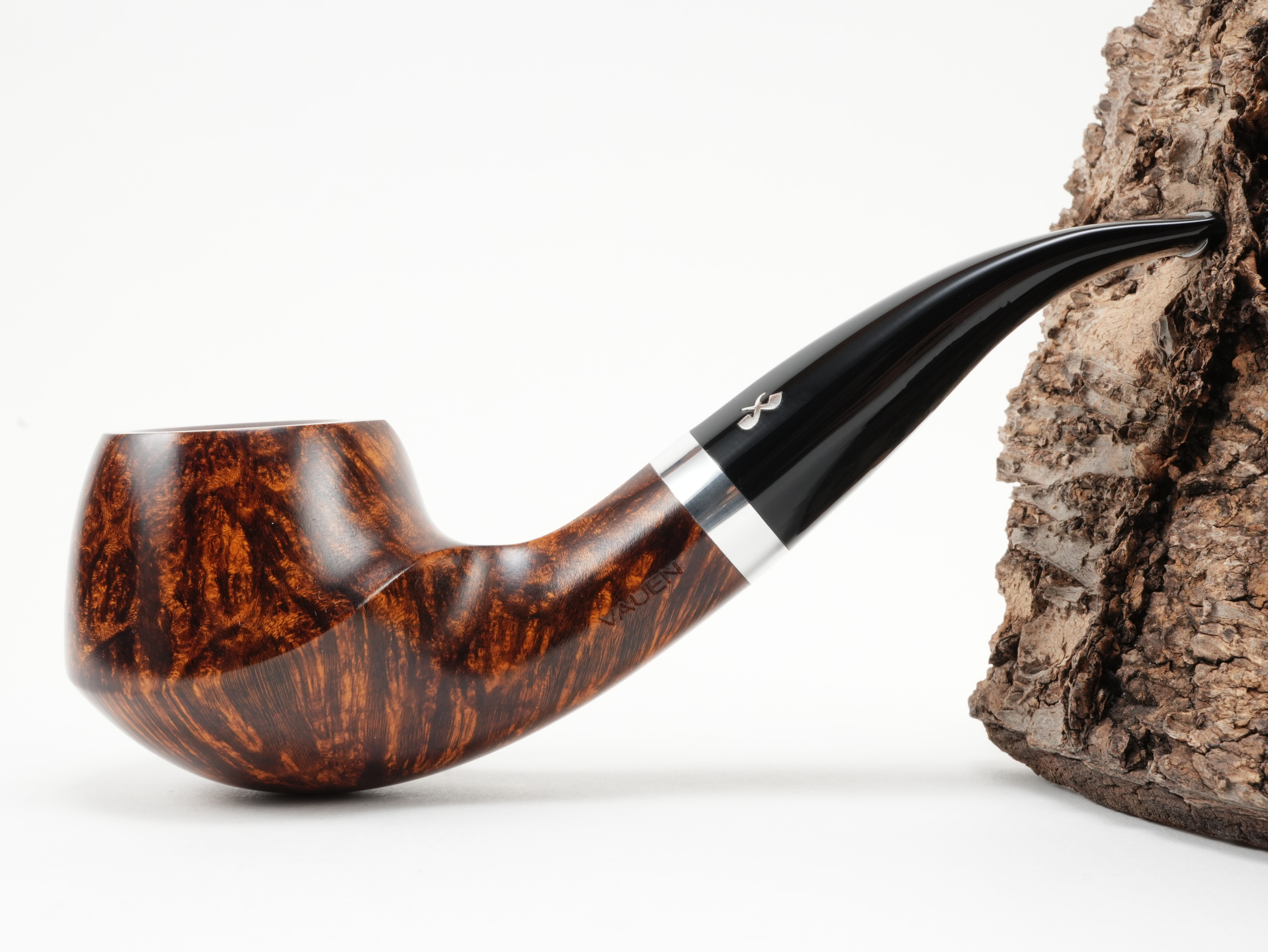 Wer es glanzvoller mag, findet in der Serie FERRO seinen Favoriten. Die Besonderheit ist die Optik eines „versilberten Holms“. Durch ein aufwendiges Beizverfahren, bei dem Grund- und Deckbeize kombiniert werden, erhält der Pfeifenkopf eine außergewöhnliche Strahlkraft und Tiefe.