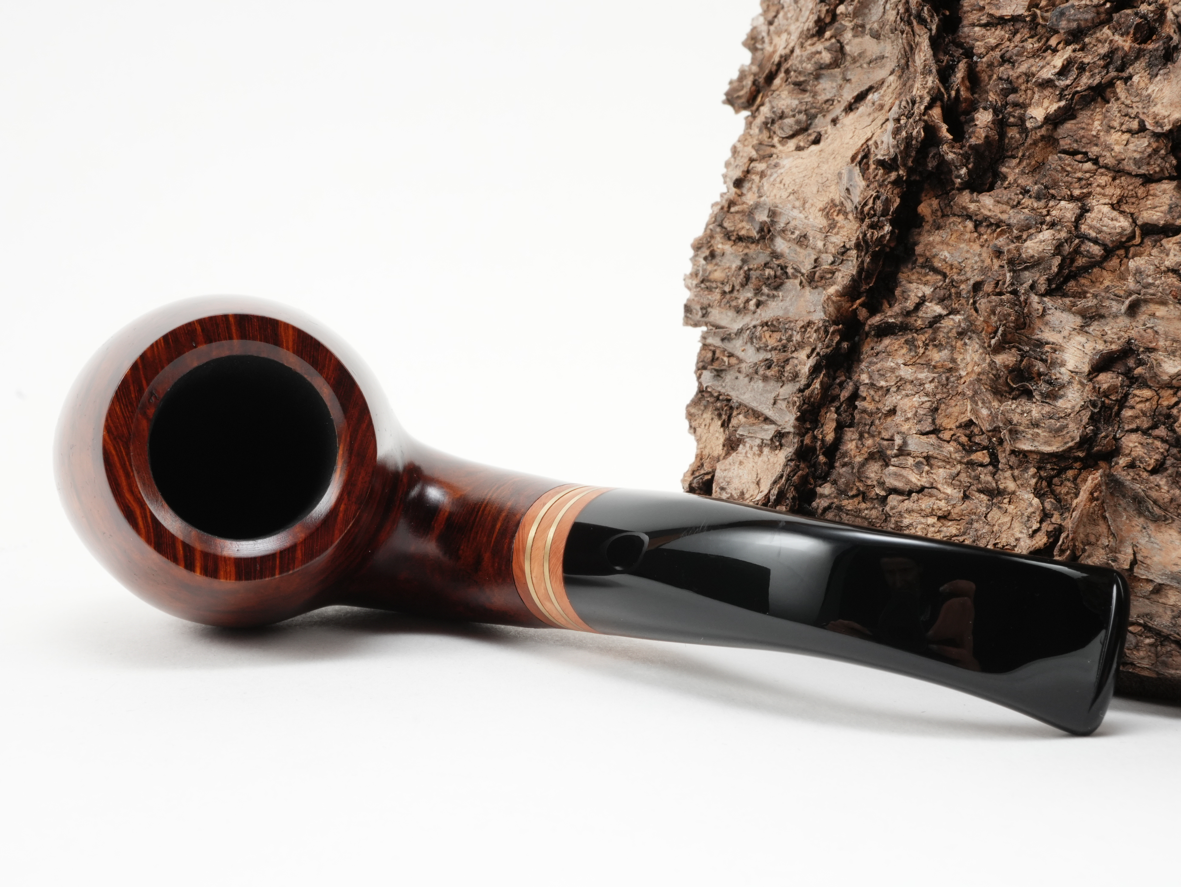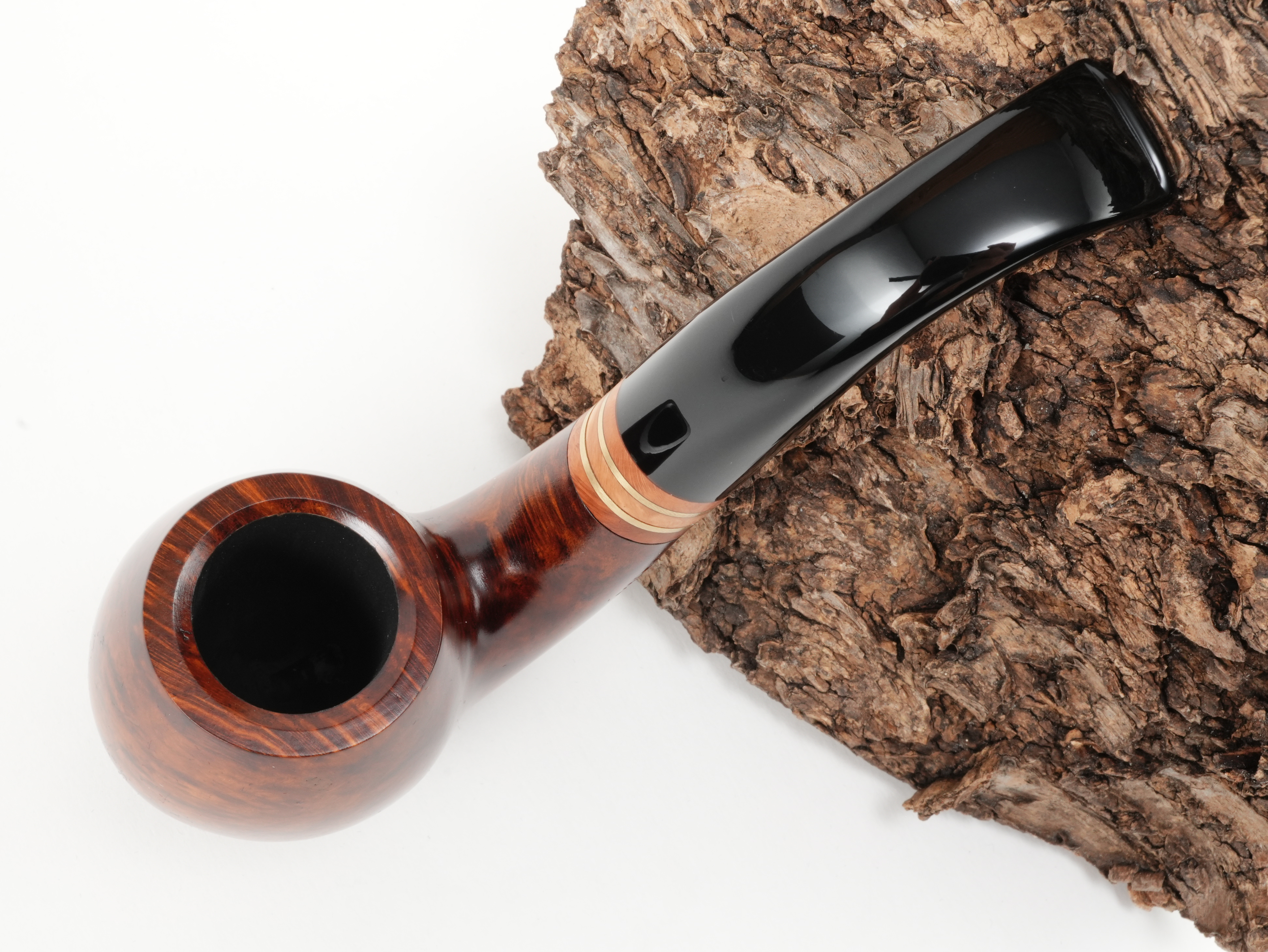 Die Brass repräsentiert die wunderschöne Verbindung von Messing und Holz. Für die Herstellung der Applikation wurden ein Bruyere-Block zu einem runden Stab gedreht und anschließend die Ringe filigran von Hand herausgearbeitet. Auch die Messingringe sind exakt auf Maß gefertigt.