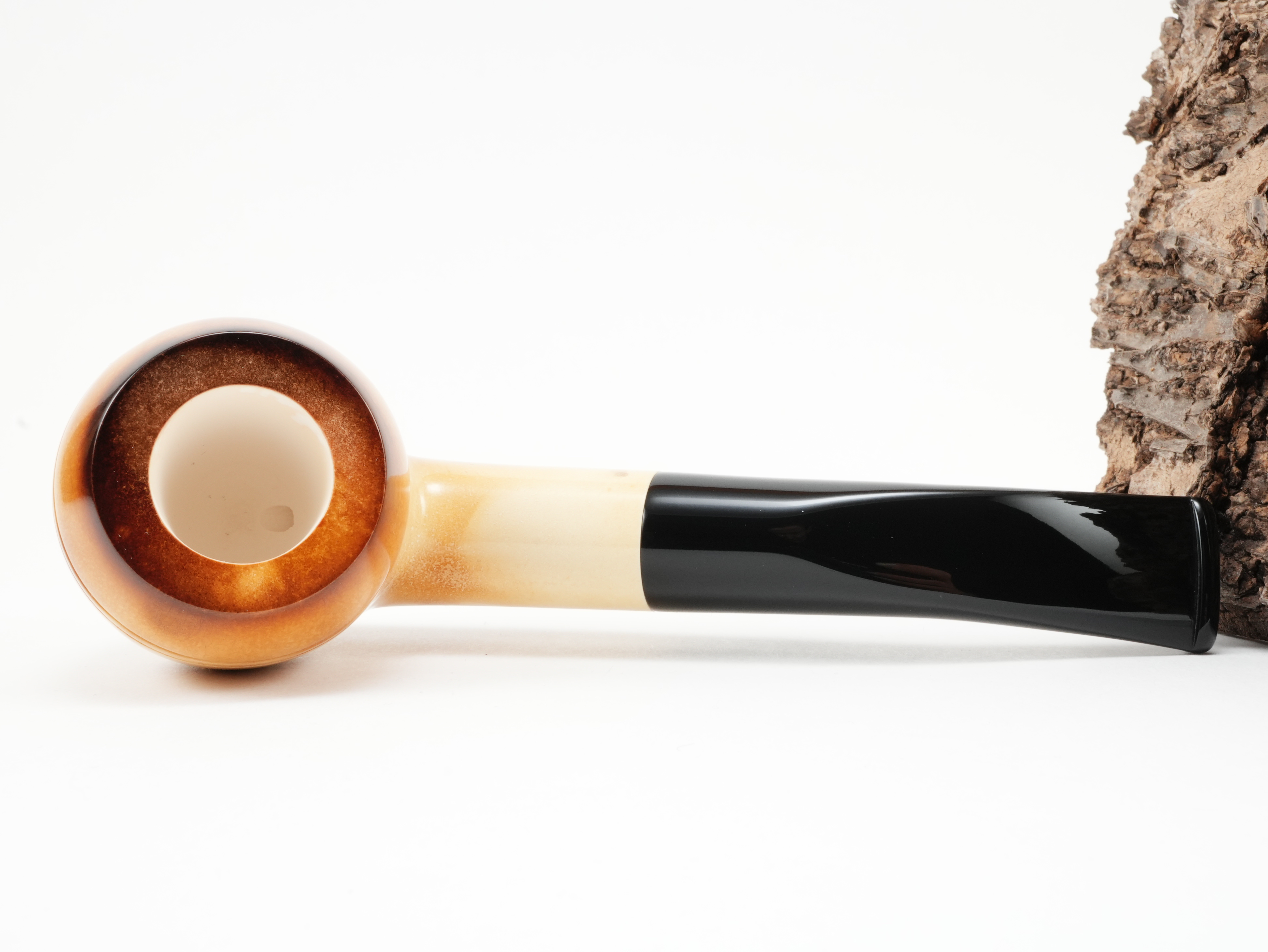 The surface was colored brown through the chemical process of calcination. This gives the pipe the typical appearance of a well-seasoned meerschaum pipe. In this version, the Altinay looks perfectly colored right from the start