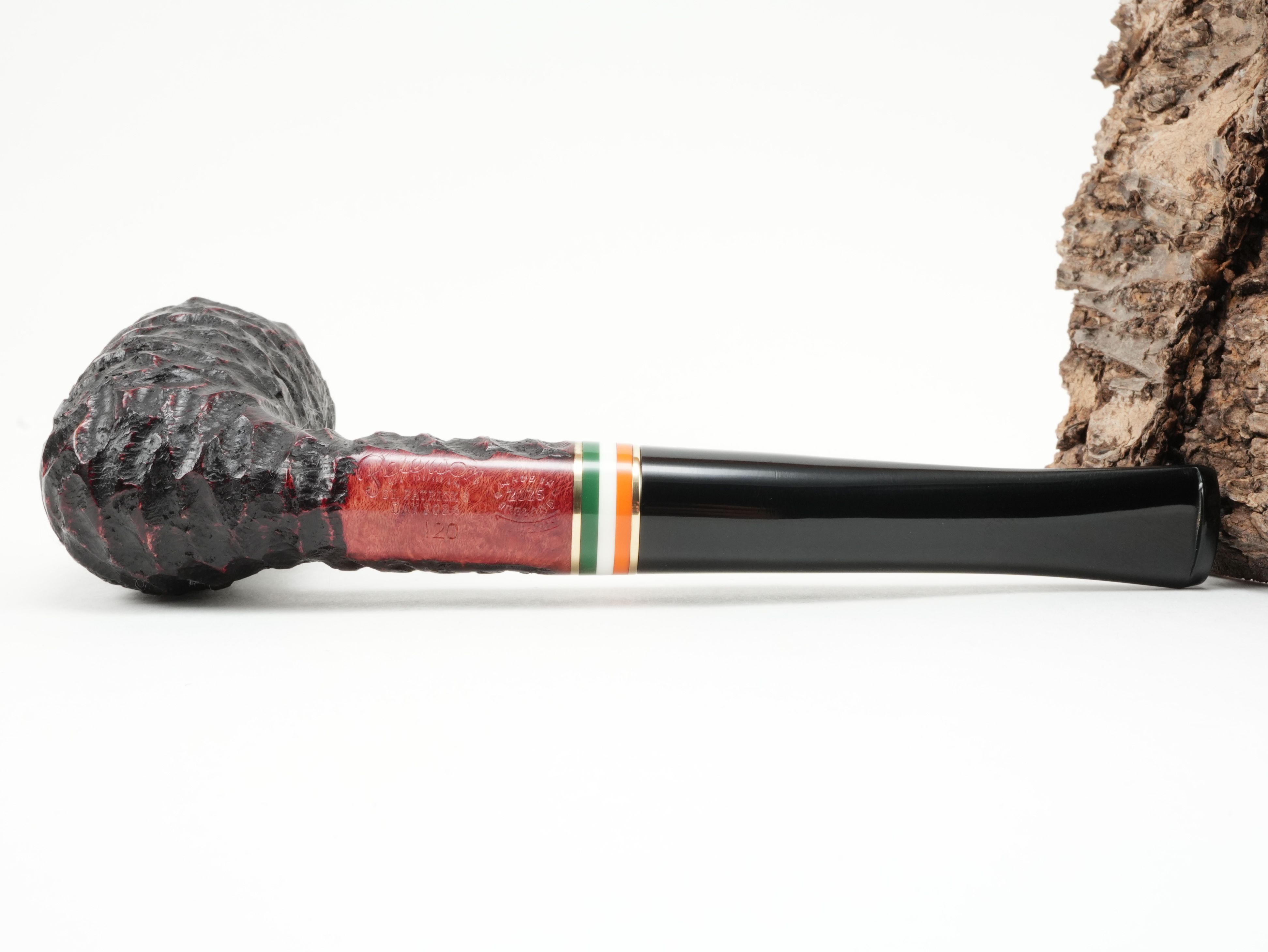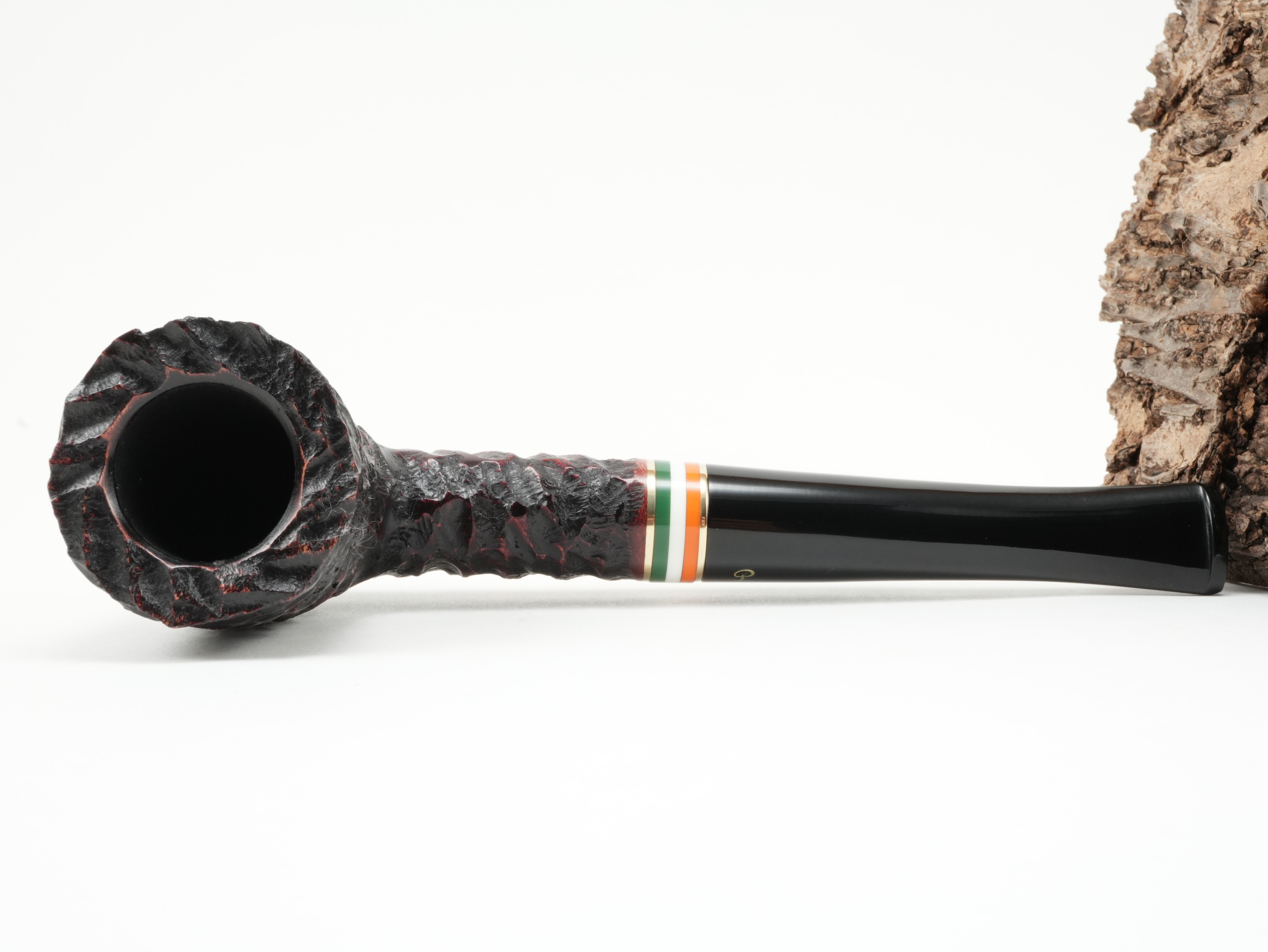 St. Patrick's Day is Ireland's national holiday. It is now celebrated all over the world. The appropriate Irish pipe comes from Peterson of Dublin for this occasion. For St. Patrick's Day 2026, a combination of rings showing the colors of the Irish flag - green, white, orange - was applied. In addition, it is strongly rusticated.