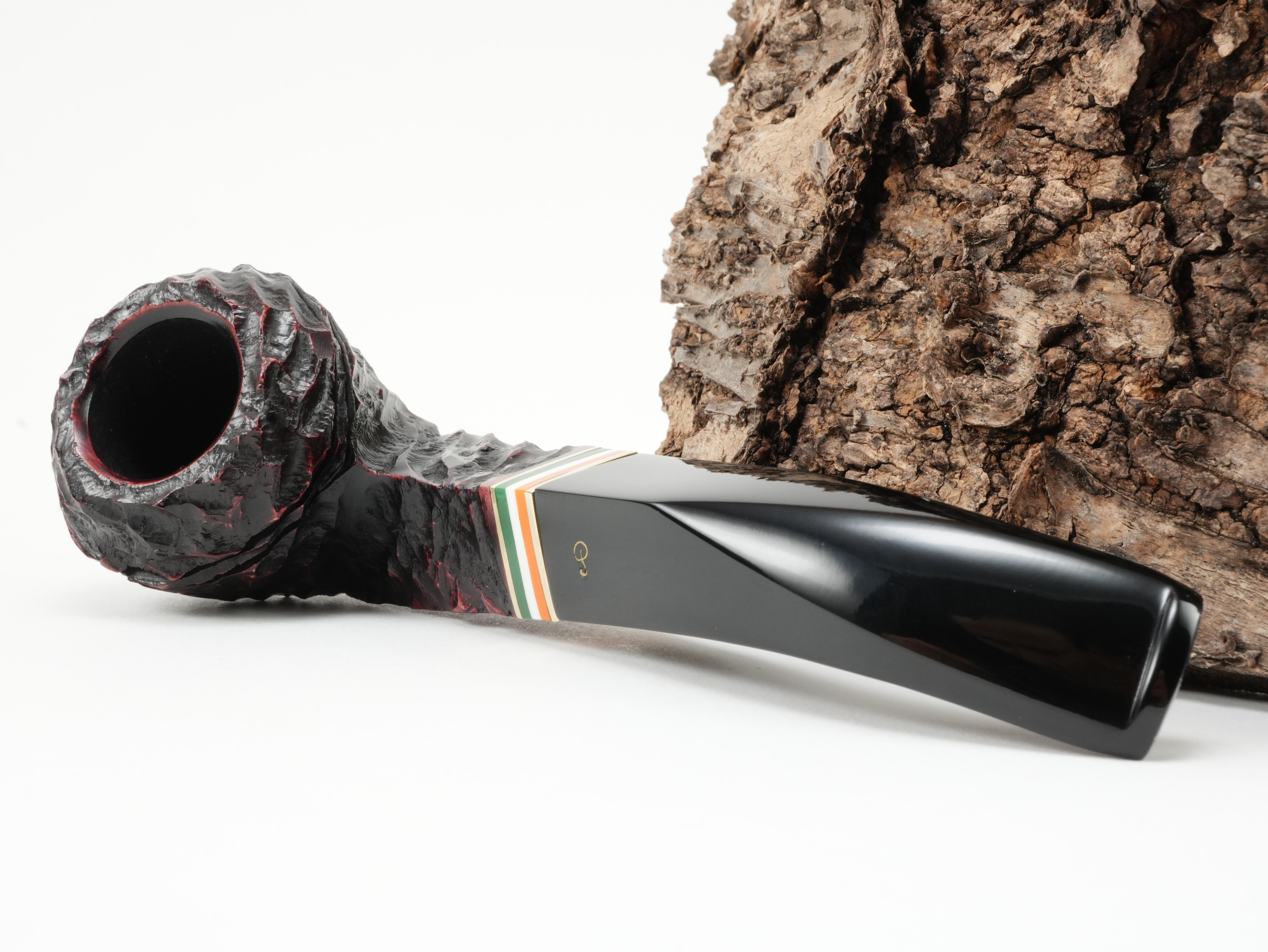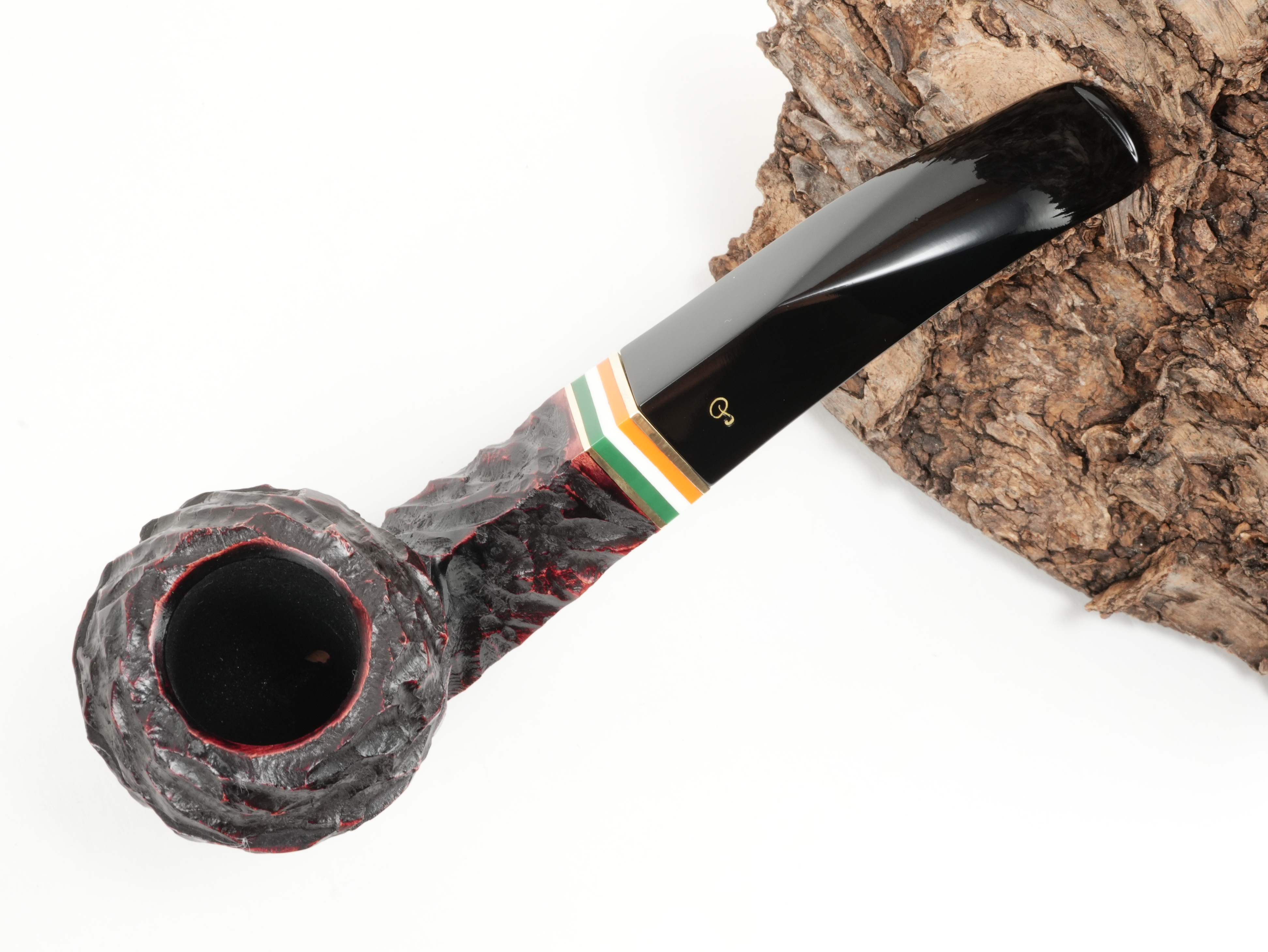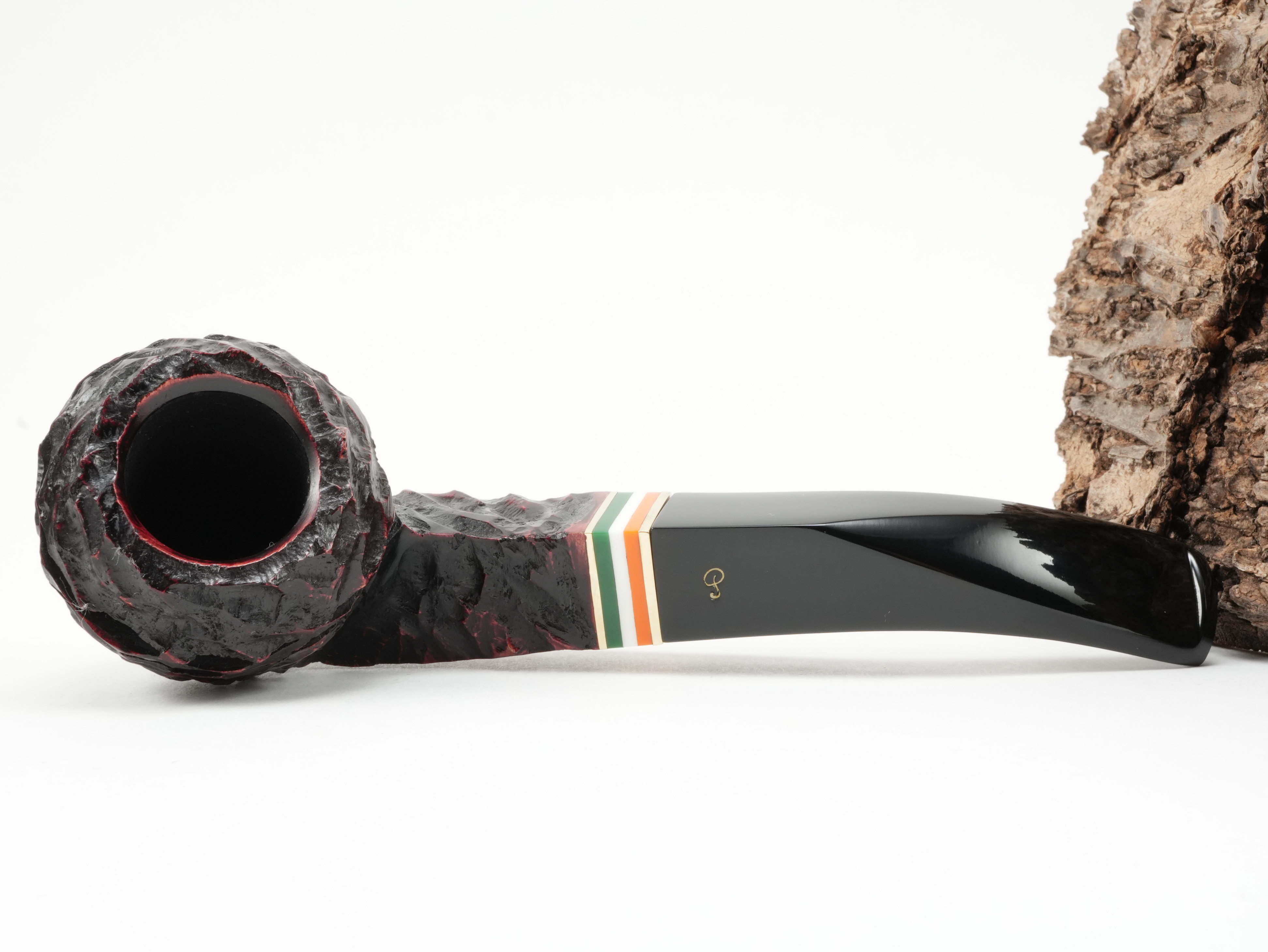 St. Patrick's Day is Ireland's national holiday. It is now celebrated all over the world. The appropriate Irish pipe comes from Peterson of Dublin for this occasion. For St. Patrick's Day 2026, a combination of rings showing the colors of the Irish flag - green, white, orange - was applied. In addition, it is strongly rusticated.