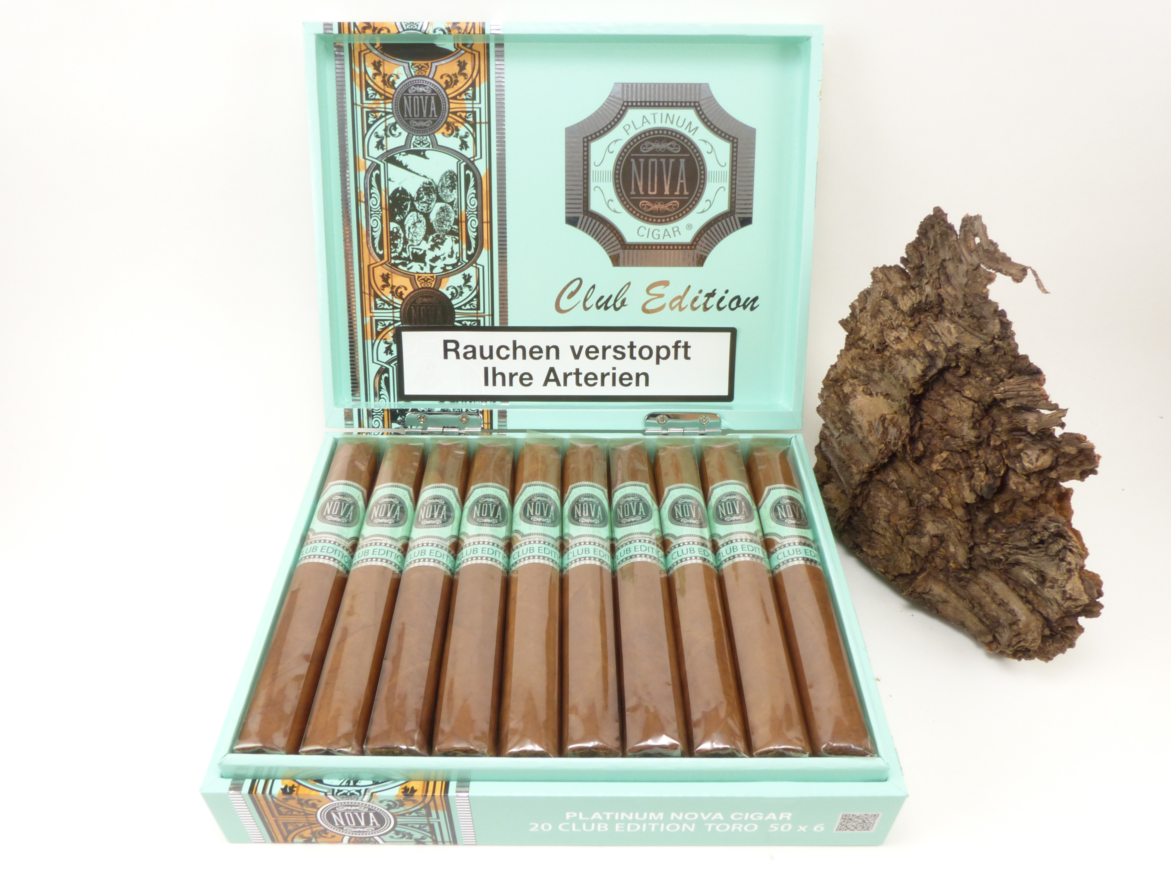 Platinum Nova purchases long-matured tobaccos, and the cigars made from them are allowed to mature for a further three years in aging rooms. The Club Edition Toro features a dark Ecuador Oscuro wrapper, while the filler and Piloto binder come from the Dominican Republic.