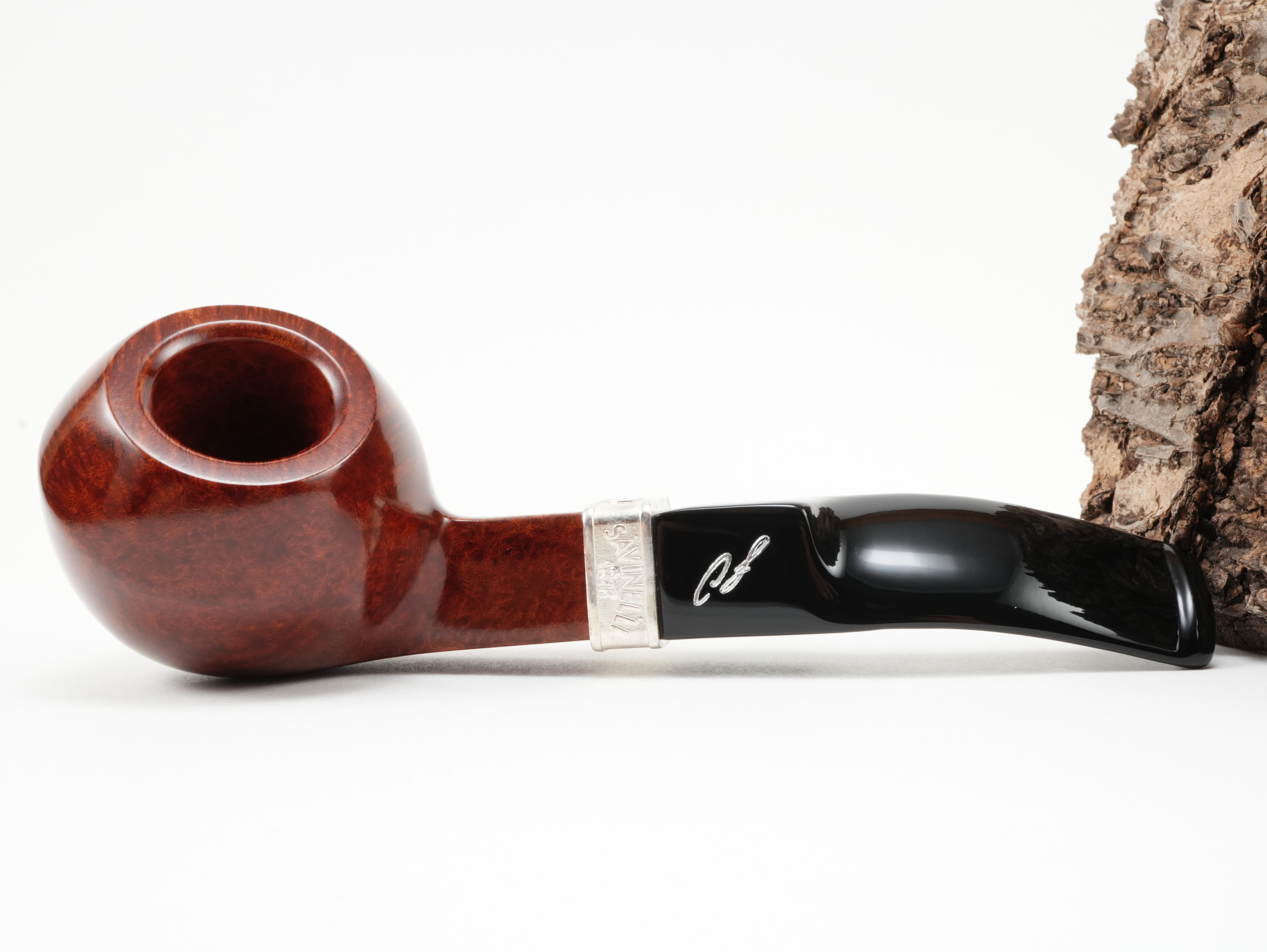 With the Carlo model, Savinelli honors the generation that preserved the heritage and guided it with a steady hand into the next era. The bulldog shape represents this continuity. Like the other anniversary models, the Carlo also features a ring engraved with the 150th anniversary and the signature on the mouthpiece.