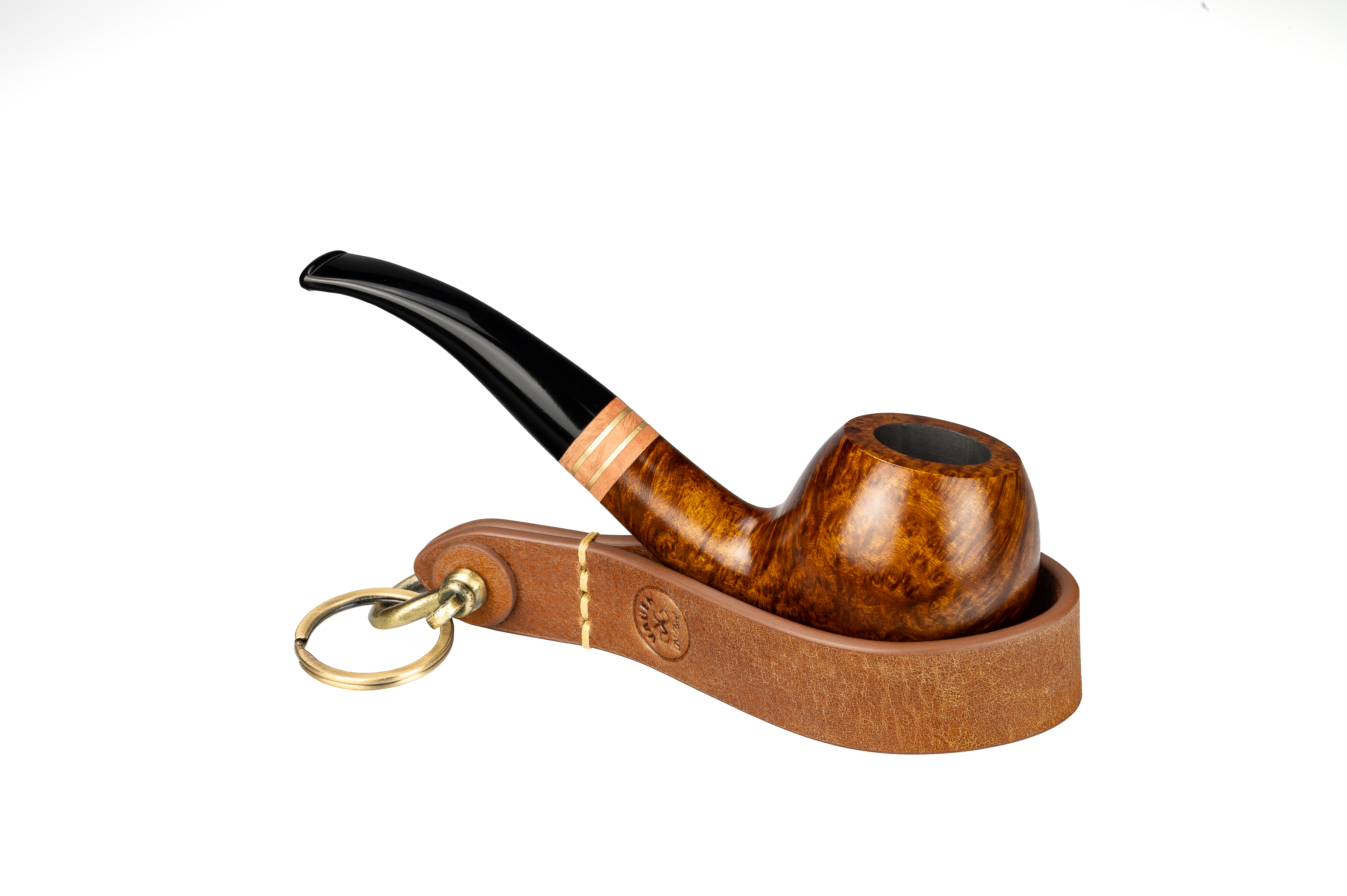 The Vauen key ring, crafted from classic brown leather, not only looks great but also serves a practical purpose: It keeps your pipe stand handy.