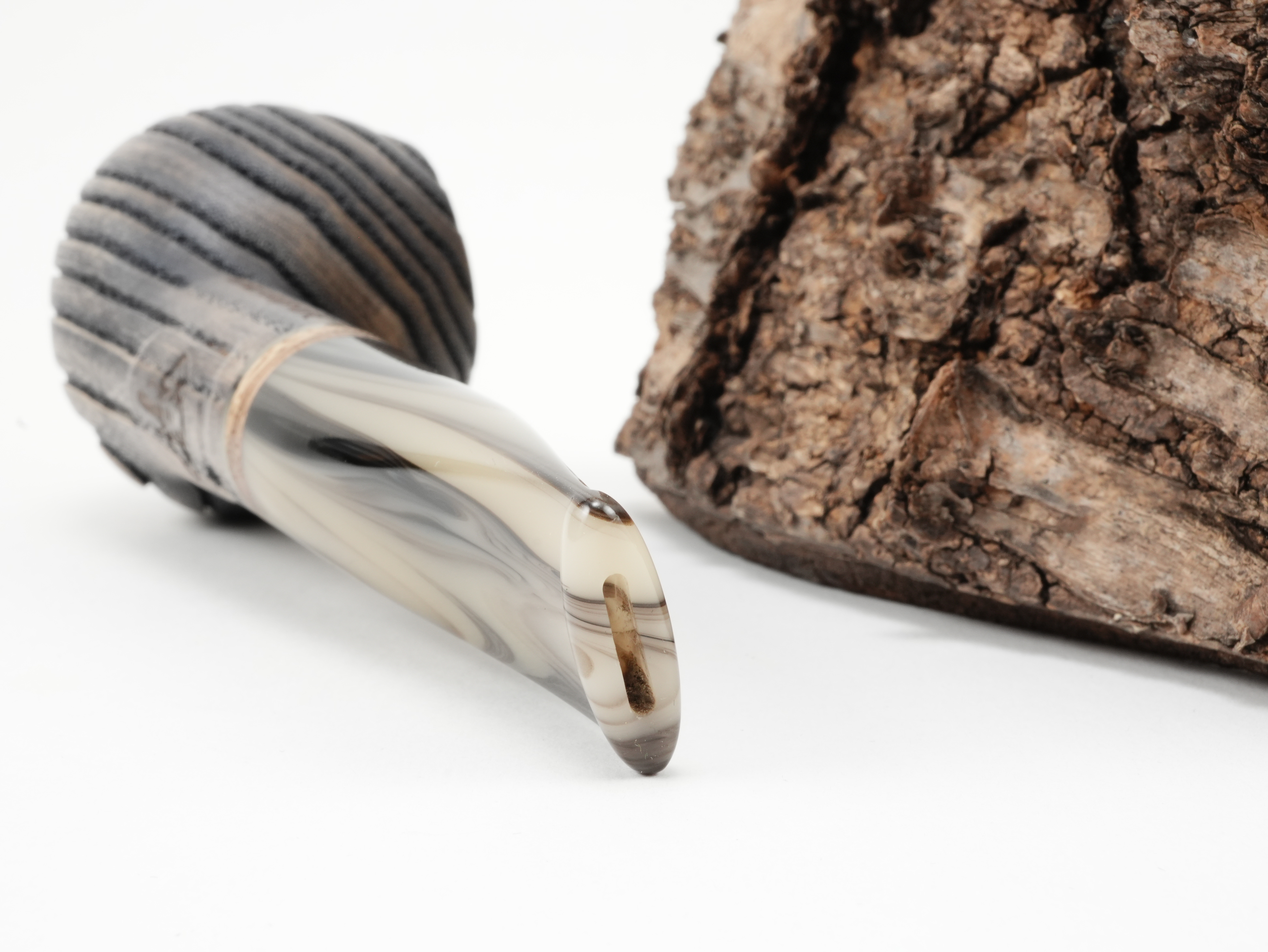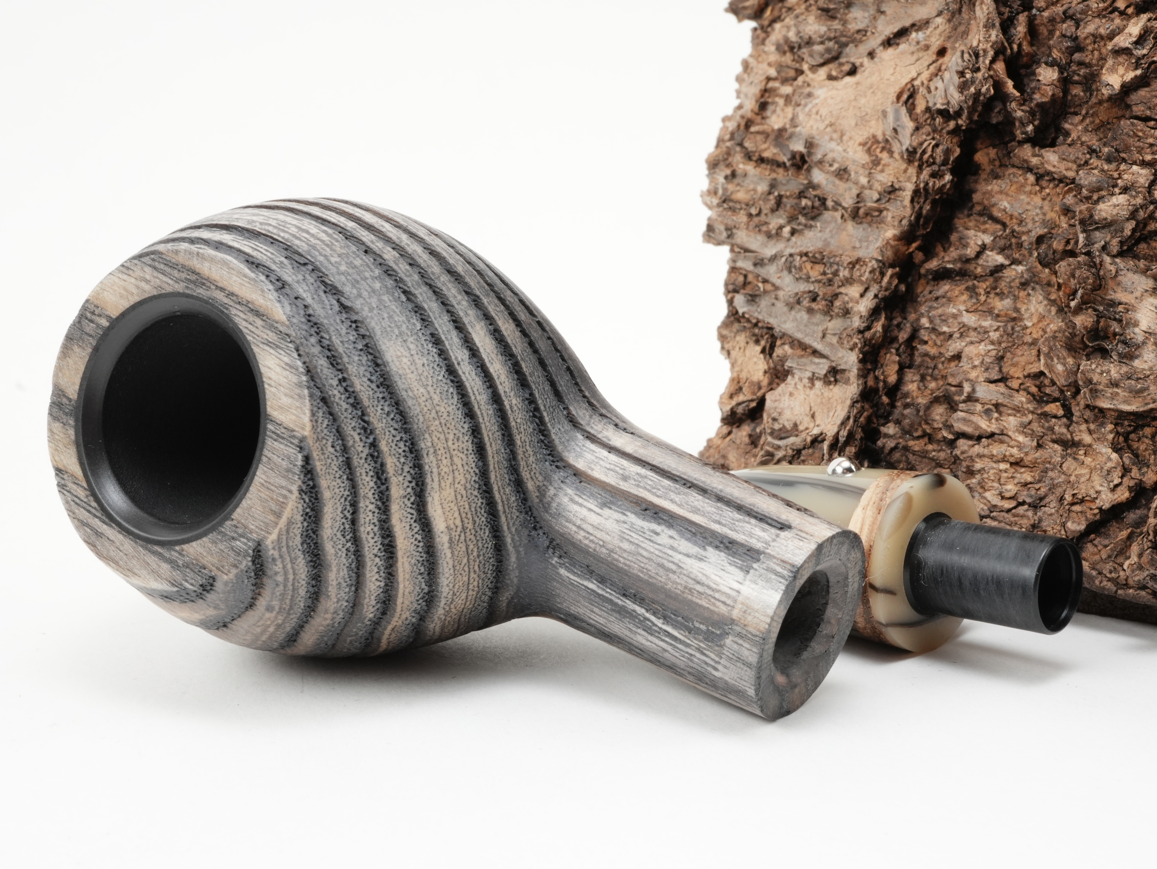 The White Elephant Erta Ale 1, made of grey ash wood, features a fireproof graphite insert in the combustion chamber. This makes it virtually impossible for the pipe to burn through.
